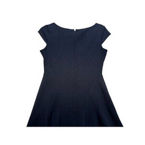 This Ann Taylor LOFT dress, crafted for a petite fit, offers a classic yet contemporary style with its cap sleeves and flattering A-line silhouette. Its rich navy color and quality materials ensure durability and comfort, making it an excellent addition to a professional wardrobe.
