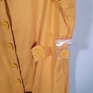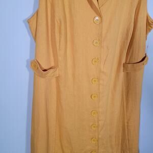 ModCloth Coasting Along Dress Sz 24 Linen Blend Mustard Yellow Button Front Midi