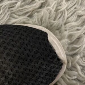 These have been worn a generous amount of times already. So I adjusted price accordingly! Great comfortable sneakers to wear to the gym or to just wear freely with casual wear. There is a small tear in top left sneaker, see in last pic!