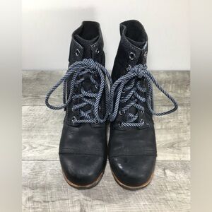 Sorel Women’s NL2264 Black Leather Premium Hidden Wedge Ankle Boots Size 10
