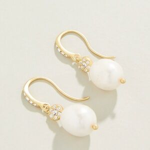 These lightweight Sparkling Bauble Drop Earrings make a timeless statement in 18kt matte gold plating with freshwater pearls and glass crystals
