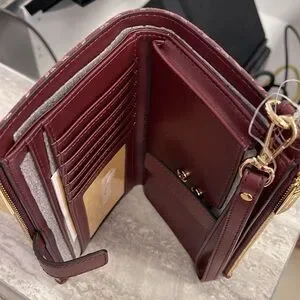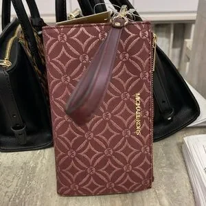 Michael Kors Jet Set Travel Large Double-Zip Wristlet-Wallet-PhoneHolder Oxblood Multi