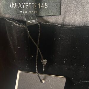 NWT Lafayette 148 velvet wide leg trousers. Absolutely gorgeous pants, beautiful drape and fluidity, so elegant and chic. Brand new with tags no flaws, only minor issue I see if a slight hanger impression on one side at the waistband. Approx measurements: 34 in waist, 15 in rise, 33 inch inseam. Smoke free home.