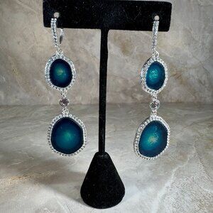 Avon Faux blue geode rhinestone Drop Earrings Silver Plating Magical stunning