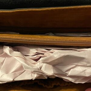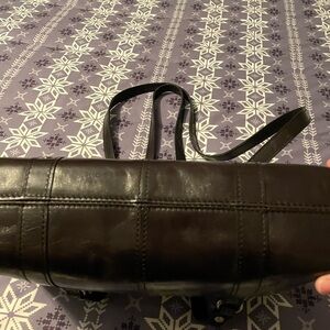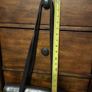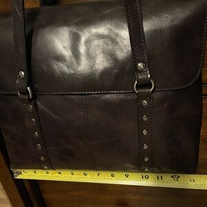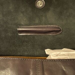 This bag is ideal for the professional. It has a large separating zipper pocket, a smalll zipper pocket, 2 slip pockets in 2large compartments. It also features a slot for a stylus if you want to use as a laptop bag. Inside is faux suede with a suede flap and magnetic closure. 100%pure grain vegetable tan leather bag. also has one back slip pockets. It’s a laptop bag but could be used as a shoulder bag as well. New without tags