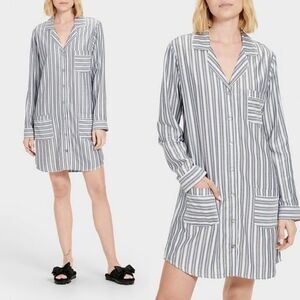 UGG Laura Striped Patch Pocket Nightshirt Size XS Long Sleeve Cotton Blend