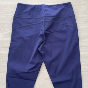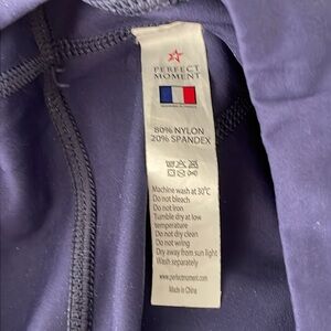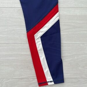 Worn once! Perfect Moment Blue compression stretch leggings with red and cream stripes. 25” inseam. Size medium.