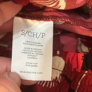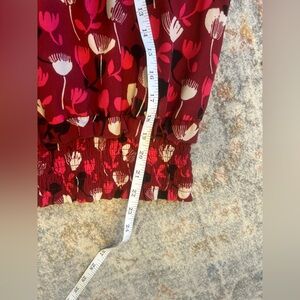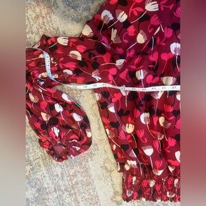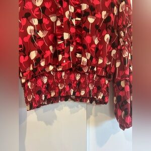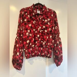 CAbi Corsage Blouse Womens Small Red Floral Bishop Sleeve Smocked Ruffle Top