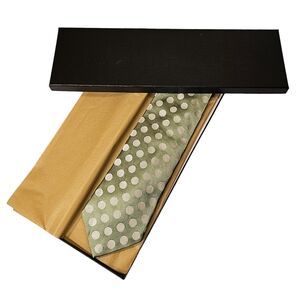 This is a 100% silk tie made by Perry Ellis. It is made in a polka dot print in sage green and cream. The tie is in new condition. The box is included. Offers are encouraged. Thank you for looking.