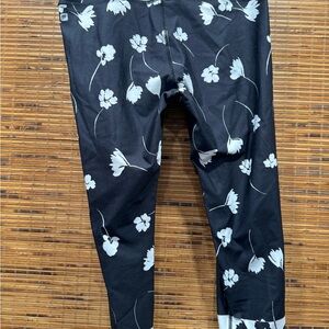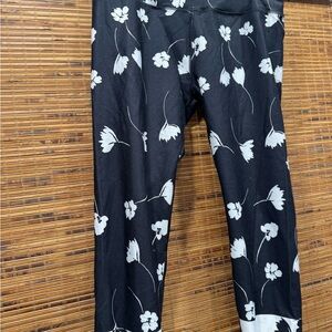 Stylish black leggings with a charming floral pattern. Perfect for any occasion. Cute to workout in. Has no size tag but I know they are a large