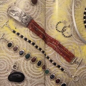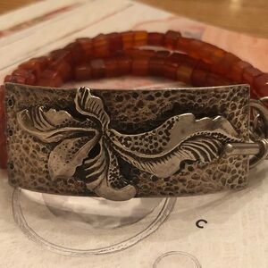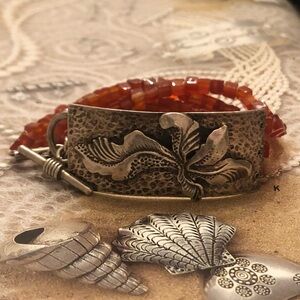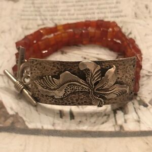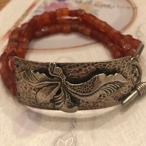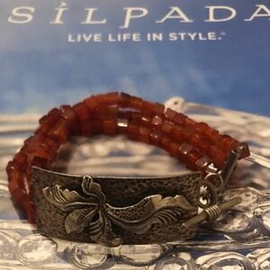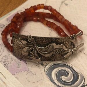 Rare Vintage Silpada Triple Strand Natural Carnelian Stone and Handcrafted Sterling Silver Toggle Clasp Bracelet B0880. Triple strands of natural carnelian stones create this bracelet accented by an exquisitely handcrafted sterling silver work of art. Measures 7 1/2” long with a toggle clasp. Extremely rare early Silpada piece from the early 2000’s.