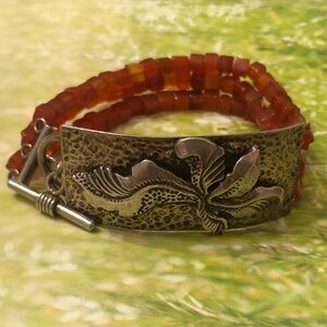 Rare Silpada Triple Strand Carnelian Sterling Silver Toggle Clasp Bracelet N0880