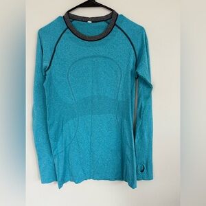 Copper Key cream and baby blue striped waffle knit short sleeved wrap top. Size Large