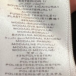 Fabric content is polyester and modal, so it has a stretch is smooth to the touch.