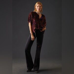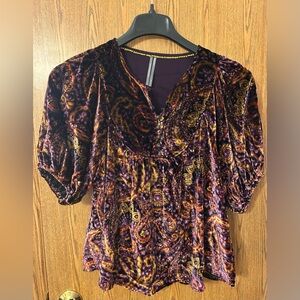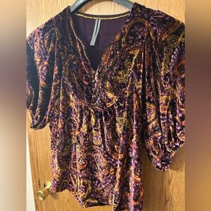 Anthropologie Puff-Sleeve Velour Peasant Paisley Blouse