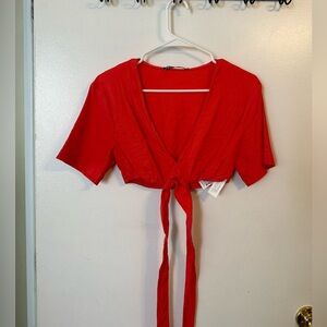 Color is a pale yellow and matching shorts are available in my closet! Will fit a medium perfectly!