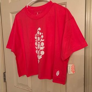 NWT! Free People Inspire Buti Logo Tee. Size X-Small. Color Pink. Features huge logo on the front of this cropped tee. Oversized fit - PTP is approximately 22. Please let me know if you have any questions πππ
