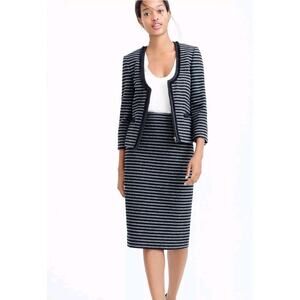 J. Crew Suiting Womens Tweed Crop Blazer Size 6 Black Stripe Full Zip