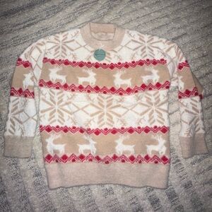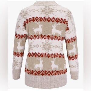 Snowflake Fawn Pattern Crewneck Sweater Long Sleeve Knit Pullover, Size: M