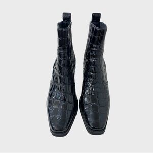 Tony Bianco Black Croc Patent Leather Boots Size 8
