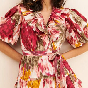 Size XL NWT Anthropologie Love the Label Ruffled Wrap Mini Dress. Has pockets, length 34”