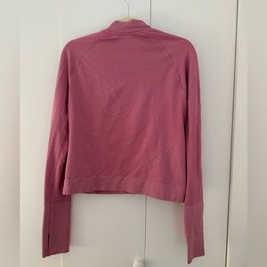 Lulu lemon rest less cropped half zip, size 12, pink, thumb holes