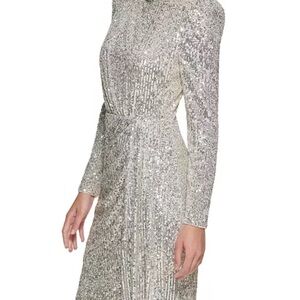 Shine at any event with this stunning silver sequin dress. Perfect for making a statement, this dress offers a glamorous look with its shimmering design.