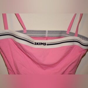Never worn! Bought when it dropped but ended up keeping another color. Pink body suit, incredibly soft with the Skims logo throughout.