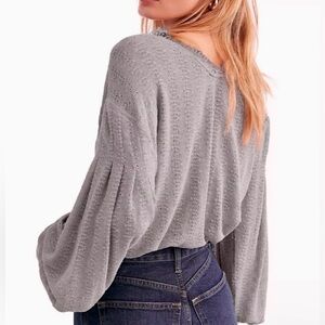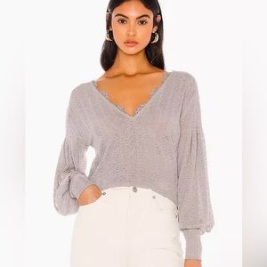 Free People Dream Girl Storm Gray Balloon Sleeve Lace Knit Top size Large