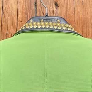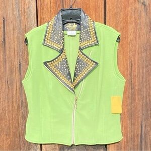 Vintage Leather Studded collar Vest in Chartreuse. Made by Your Wildest Dreams