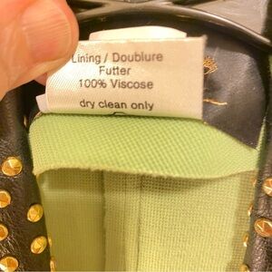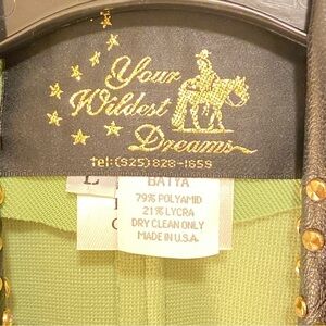 This is a Vintage Vest made by Your Wildest Dreams in the USA. Weastern Wear with wide Black Leather studded collar with gold and crystal studs.