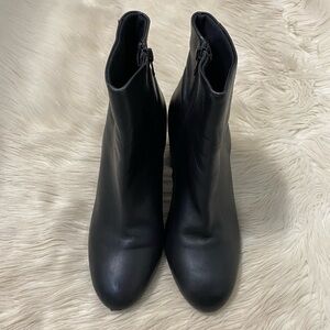 ASOS Design Black Leather Heeled Boots Almond Toe Minimalist Ankle Booties