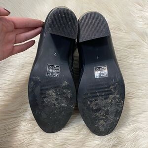 There is a scuff on one toe and a mark on the side of one boot. There is also scuffing to the heels. Pictured in the last few photos. Otherwise in good condition.