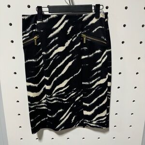 Michael Kors Women Zebra Zipper Faux Pockets Pencil Skirt Size 4