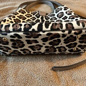 Adorable leopard print bag can be worn as shoulder bag or handbag, shoulder strap can be removed, multiple pockets inside to organize your belongings, magnetic closure, barely used/like new condition. 12”x10”x4 1/2”