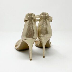 Add sparkle to your wardrobe, day and night, with these pretty heels. These Gold Size 7.5 Material Girl Women's Heeled Sandals are perfect for your collection! The padded footbed and adjustable ankle strap add comfort to these 4" heels.