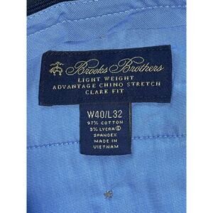 These Brooks Brothers Advantage Milano Tan Khaki Chinos in size 40 X 32 are classic, stylish pants suitable for various occasions like travel, parties, or business. Made of lightweight cotton with a flat front and straight leg style, they offer comfort and easy care. Featuring slash pockets and a solid tan color, these chinos are a versatile addition to any wardrobe with a touch of preppy sophistication.