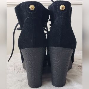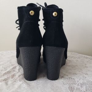 MICHAEL Michael Kors Rory Lace Up Wedge Booties Ankle Boots Suede Black Size 8.5