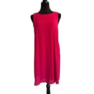 Everly Hot Pink Chiffon Shift Dress Bow Back Detail Party Cocktail Dress Size L