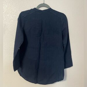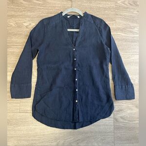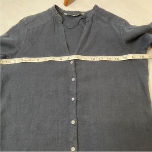 Zara Basic 100% Linen Navy Blue Button Down Shirt Blouse