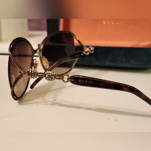 never worn, gucci details on the lens, Crystal chain, tortoise color