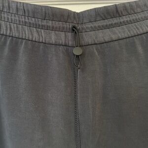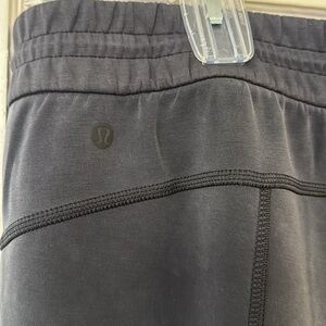 Ultra soft stretch, comfy cropped sport, workout, yoga loungewear. Secure inside phone/device pocket inside the right pocket. Lululemon logo on back left hip. High rise. Wide elastic waist. Cropped tapered leg.