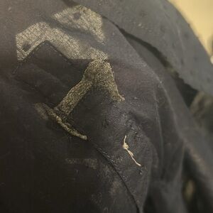 I took a picture of black interfacing at the bottom of the button placket inside the blouse . It doesn’t affectct wearing it; it is just unusual for Gap to to have that showing inside. In a lot of light the blouse can be slightly sheer.