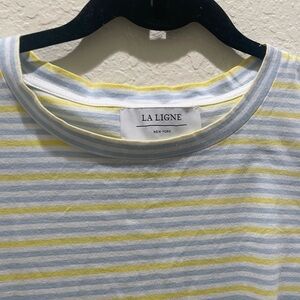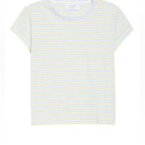 A banded crewneck polishes the look of this slightly shrunken tee patterned in crisp, thin stripes.