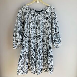 Banana Republic Dress Black White Fit & Flare Sleeveless Abstract Cotton 8