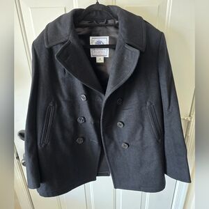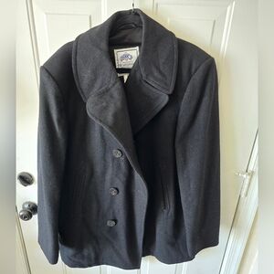 Stylish black trench coat. Features a sleek design with a contrasting inner lining. Perfect for any occasion.