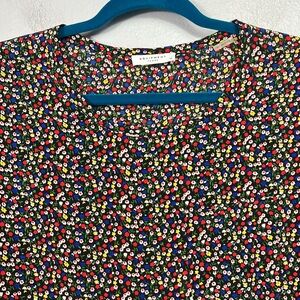 Equipment Femme leopard and floral print long sleeve blouse, size medium. 100% silk with leopard print sleeves and a ditzy floral print body with a chest pocket.