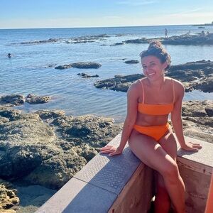 super cute and soft pom pom beanie, will keep you very warm! only worn twice.