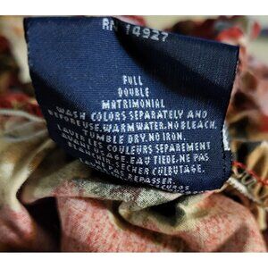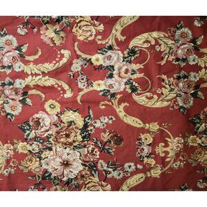 Ralph Lauren 4-piece full/double sheet set, including a flat sheet, fitted sheet, and 2 standard size pillowcases. Danielle Marseilles deep red floral print. Ruffled trim on the pillowcases and flat sheet. All pieces are bright and crisp. They look and feel like they were removed from their packaging and never used.