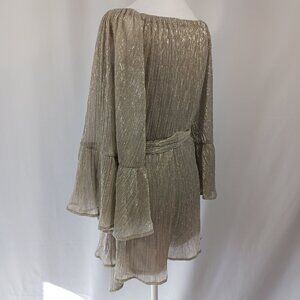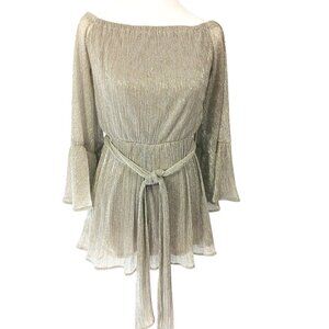 Lush Metallic Gold Romper, Flounce Sleeves, Tie Waist, Off the Shoulder, Size S